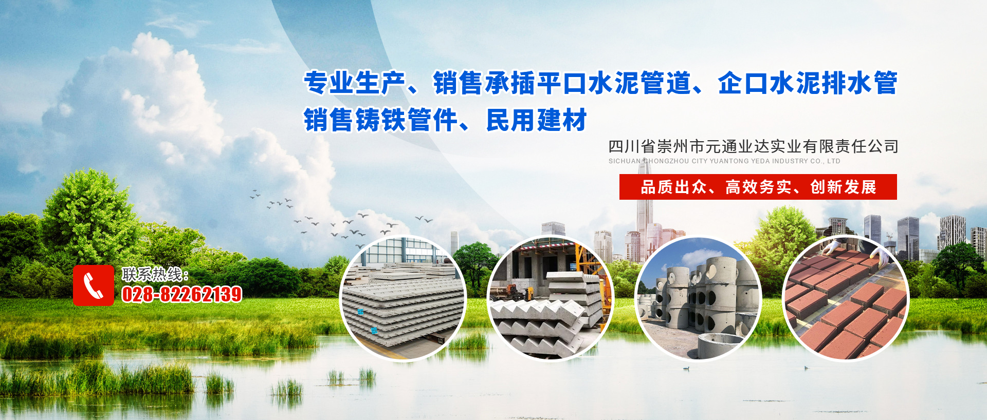 四川省崇州市元通業(yè)達(dá)實(shí)業(yè)有限責(zé)任公司是專業(yè)生產(chǎn)、銷售承插平口水泥管道、企口水泥排水管、銷售鑄鐵管件、民用建材的企業(yè)。自創(chuàng)辦以來(lái),本著誠(chéng)信經(jīng)營(yíng)的原則,積極進(jìn)取、勇于開(kāi)拓,經(jīng)過(guò)多年的努力拼搏,隨企業(yè)不斷拓展壯大,企業(yè)于2002年8月26日重組注冊(cè)四川省崇州市元通業(yè)達(dá)實(shí)業(yè)有限責(zé)任公司,法人代表為王自立。 目前鋼筋混凝土排水管是公司的主導(dǎo)產(chǎn)品。管徑:Φ200——Φ3550mm,長(zhǎng)度2000—2500mm。公司有多條生產(chǎn)線,年生產(chǎn)能力1000公里以上,產(chǎn)品還有與管道安...